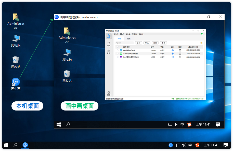 使1台电脑变2台使用,既不影响流程运行,同时还可进行其他操作