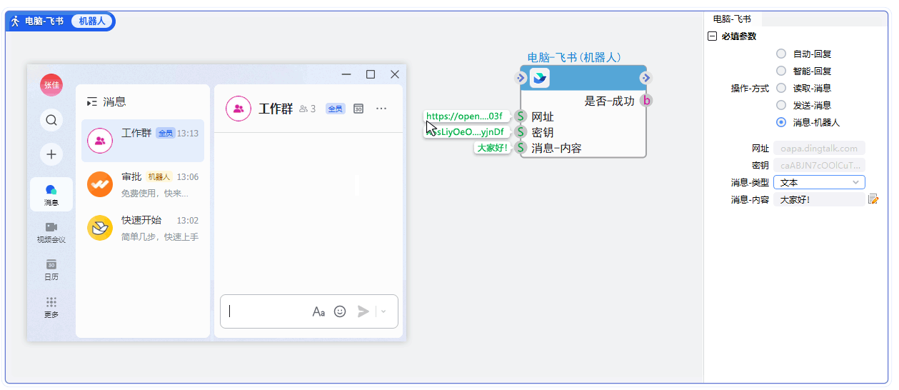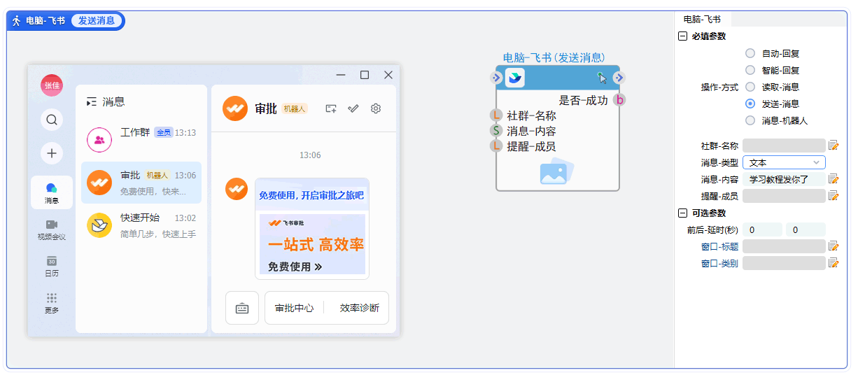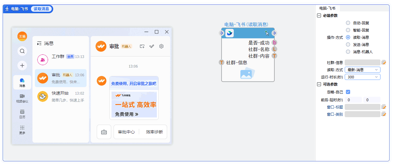 对电脑飞书的操作,如自动回复、读取消息、发送消息等