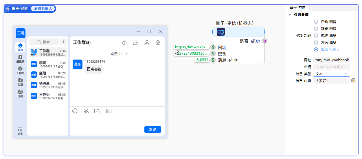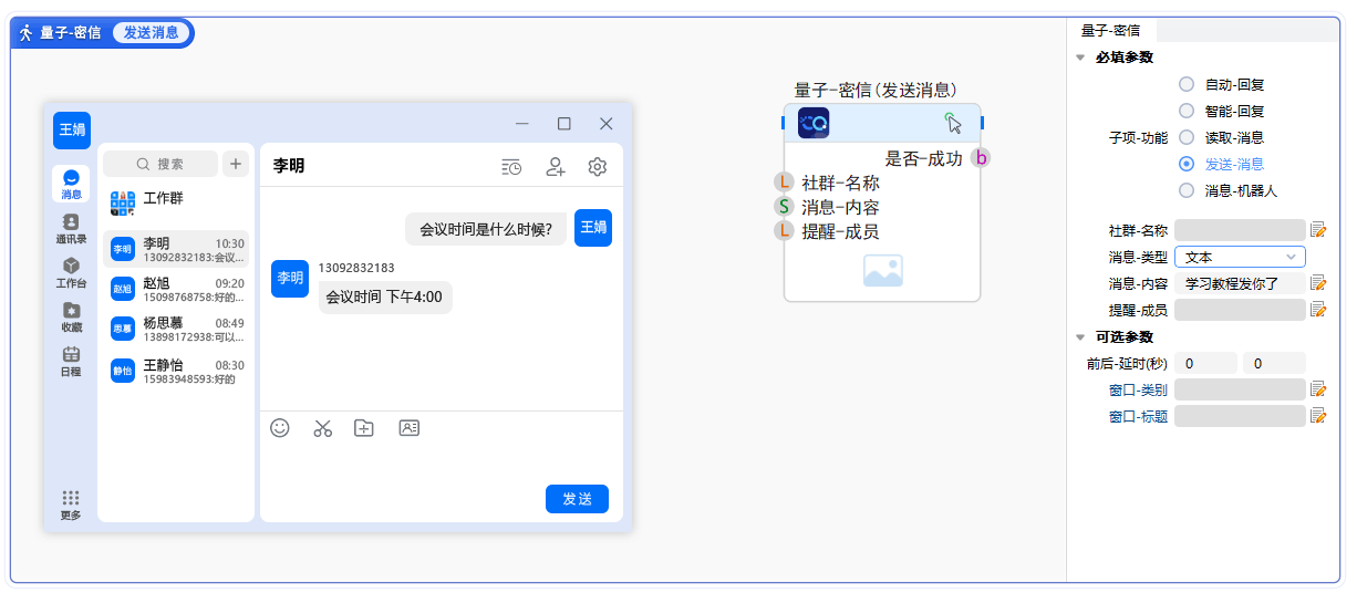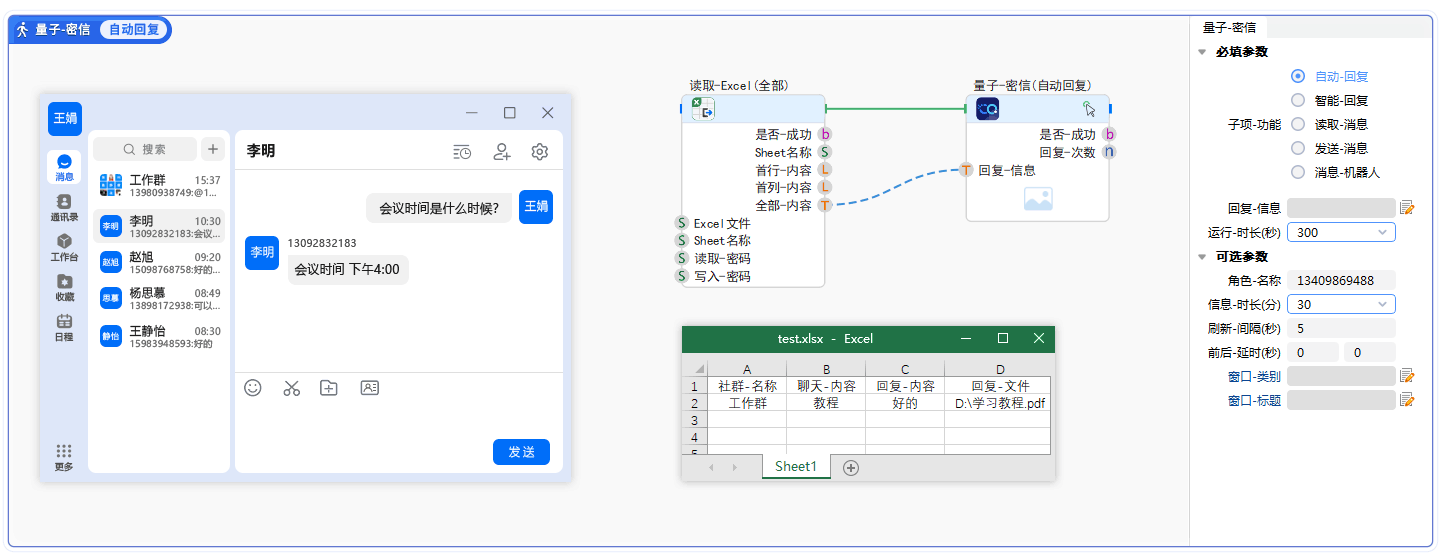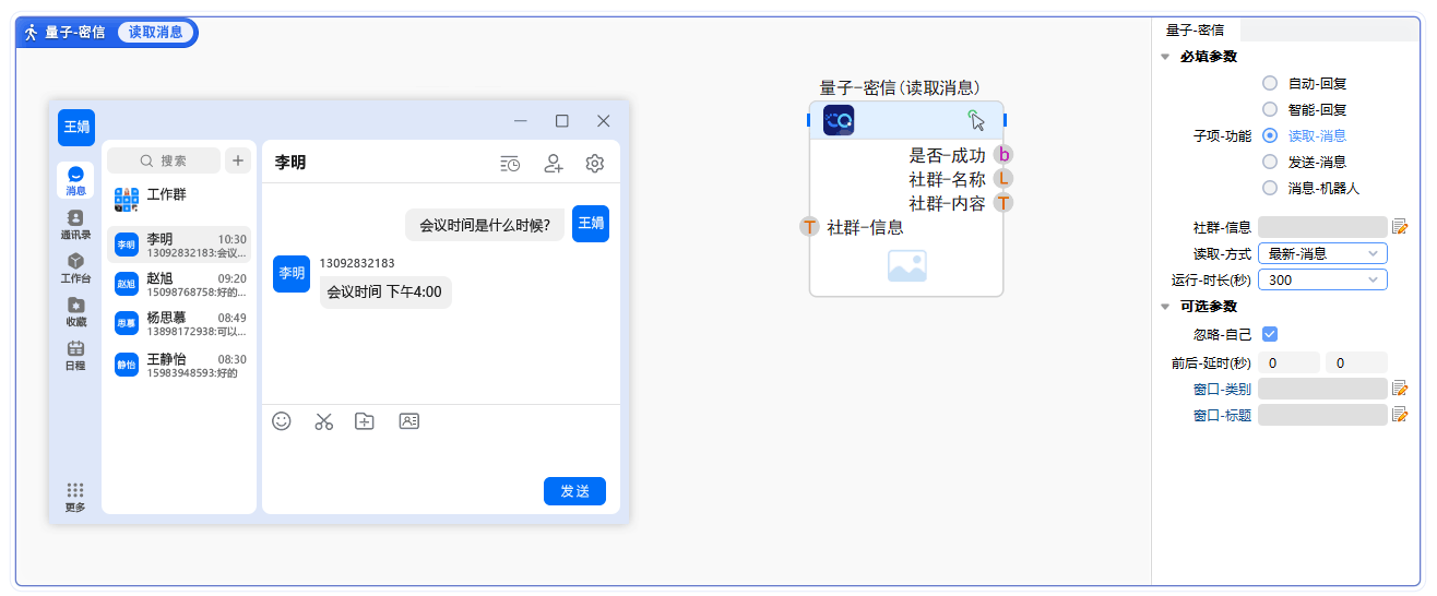 对量子密信的操作,如自动回复、读取消息、发送消息等