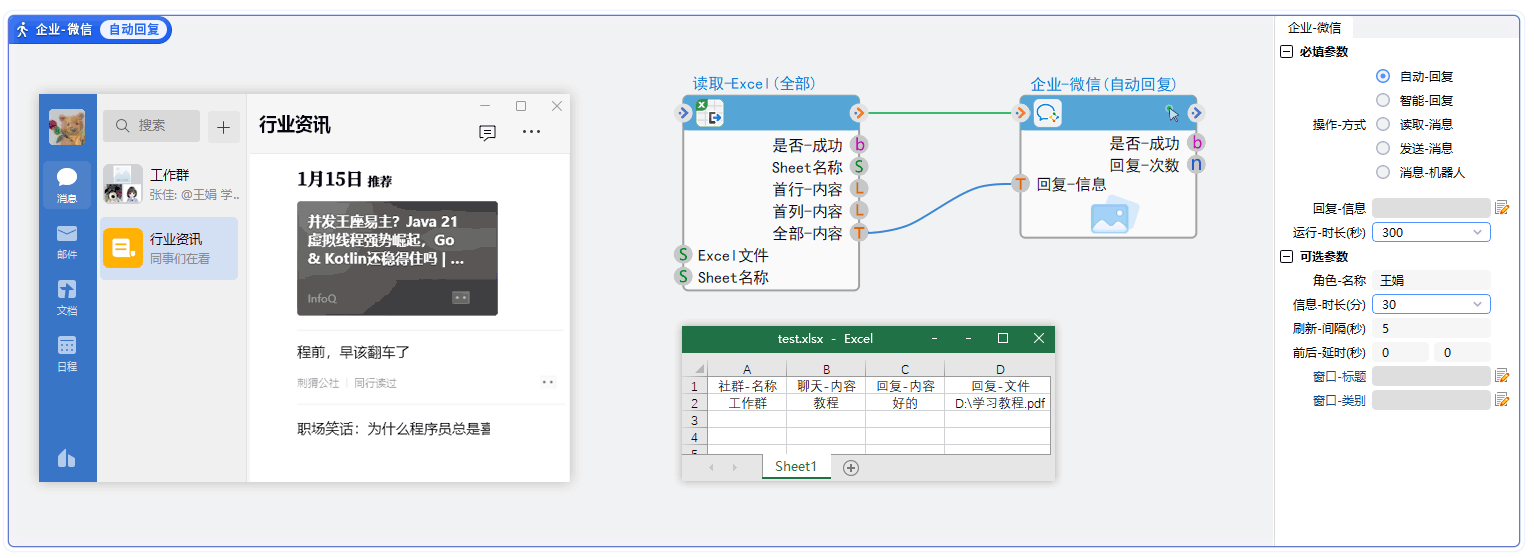对企业微信的操作,如自动回复、读取消息、发送消息等