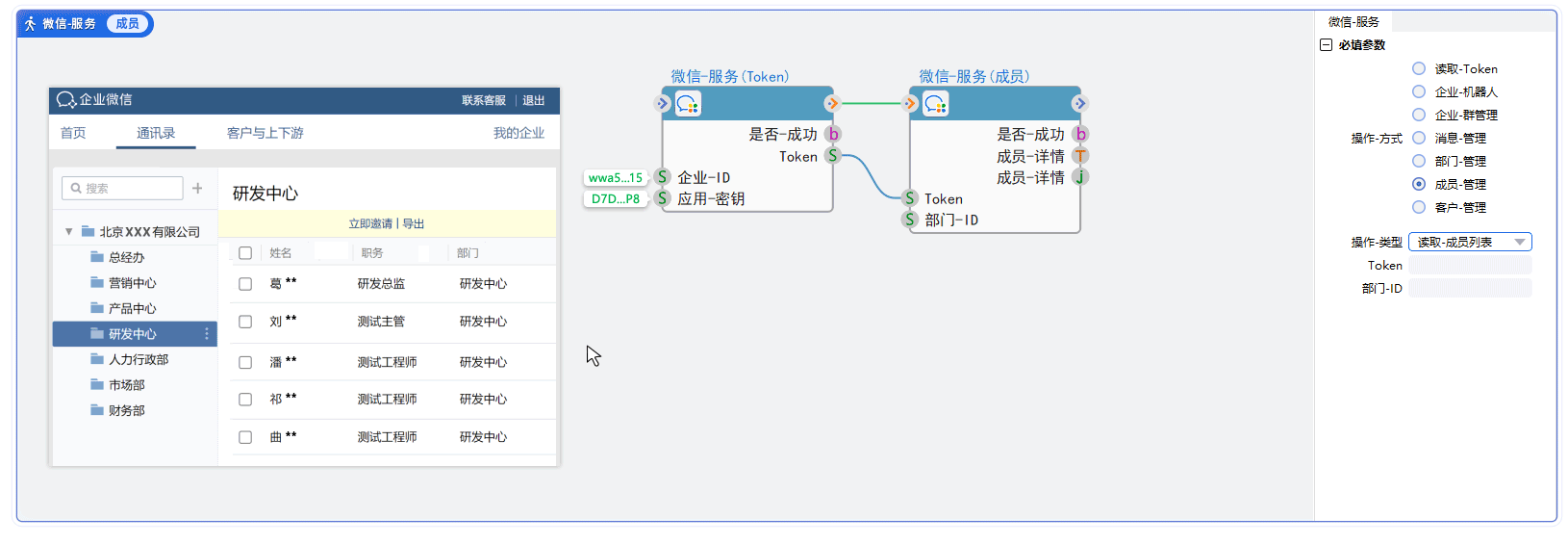 对企业微信的一系列操作,如读取企业微信部门、成员、客户信息等